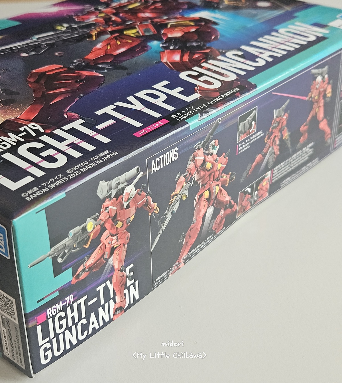 패키지 디자인은 지쿠악스 스타일의 붉은 톤으로, 기존 건캐논과 비교해 더 날씬한 실루엣이 인상적이었어요.