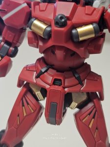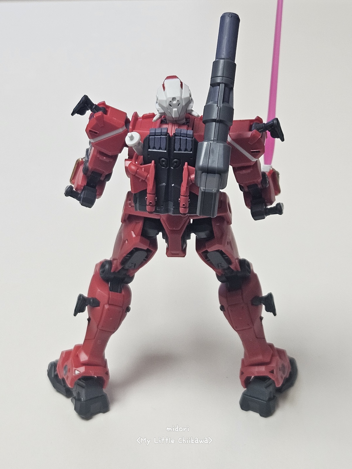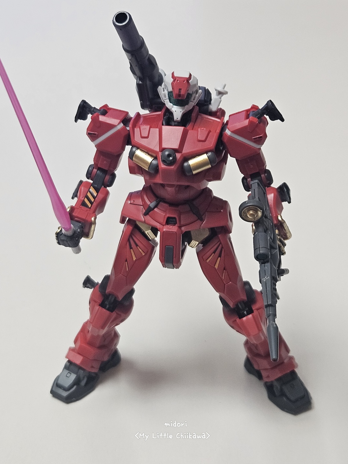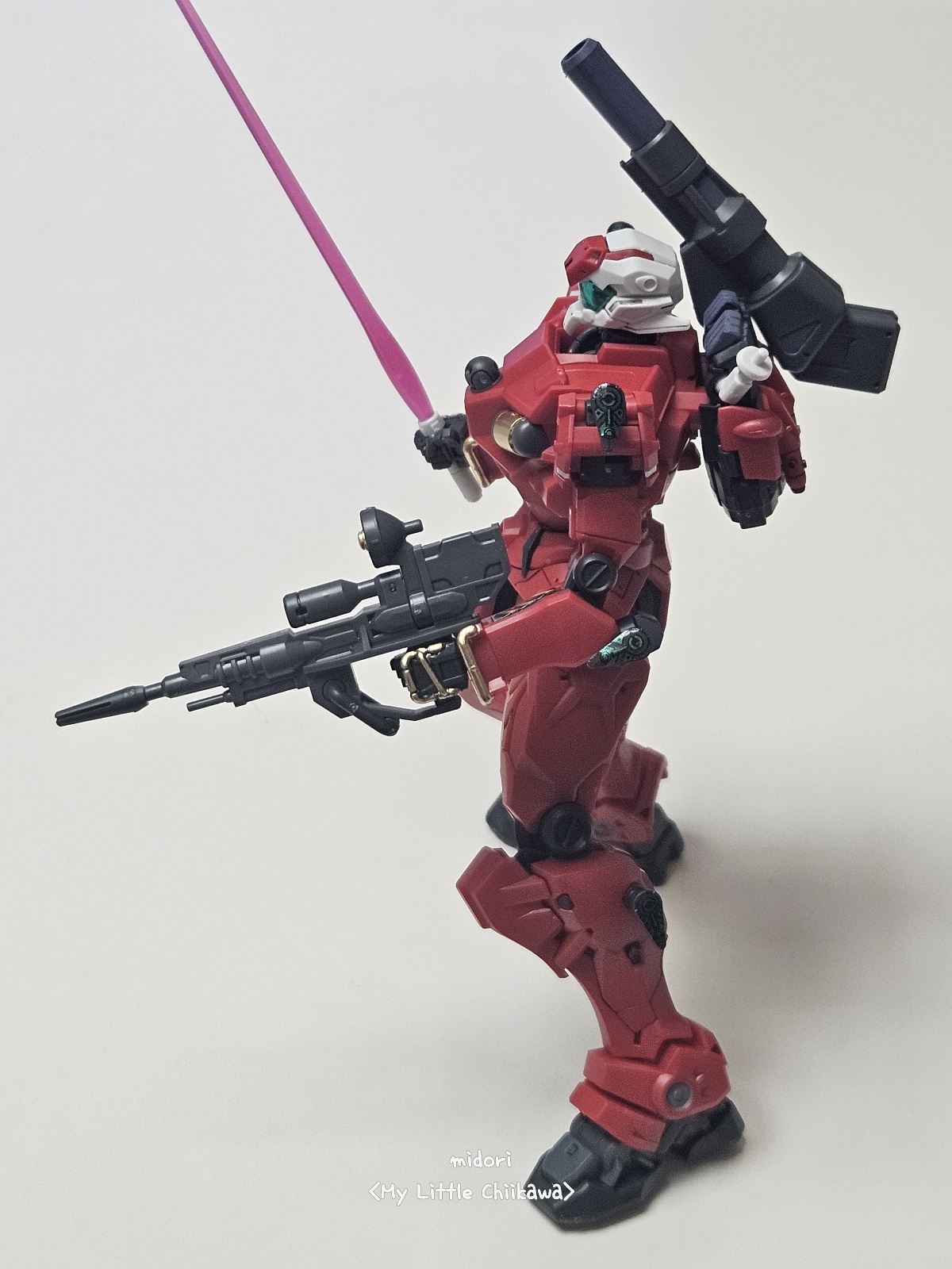 - 디자인: 기존 HGUC 건캐논보다 체격이 크고 날씬함. 붉은 건담과 비슷한 스타일로, 지쿠악스 버전만의 독특한 매력.