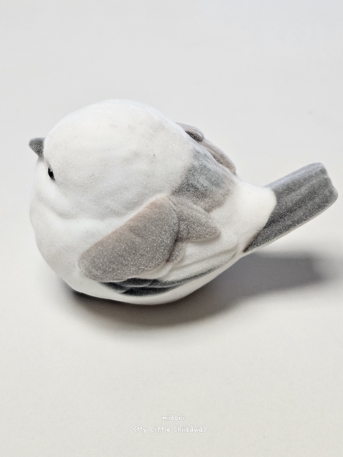 - 외형 & 디자인: 시마에나가는 동글동글한 몸에 긴 꼬리가 특징인 새예요. 11탄에서는 모후모후 플로킹으로 온몸이 솜털로 덮여, 마치 작은 털공 같아요! 동그란 눈망울과 살짝 퉁명스러운 표정이 매력 포인트. 크기는 약 4cm로, 손가락 위에 올리면 귀여운 ‘테노리’ 포즈가 완성돼요. 제가 가장 좋아하는 새가 피규어화되어서 언제든지 곁에 두고 볼 수 있다니 정말 좋아요.